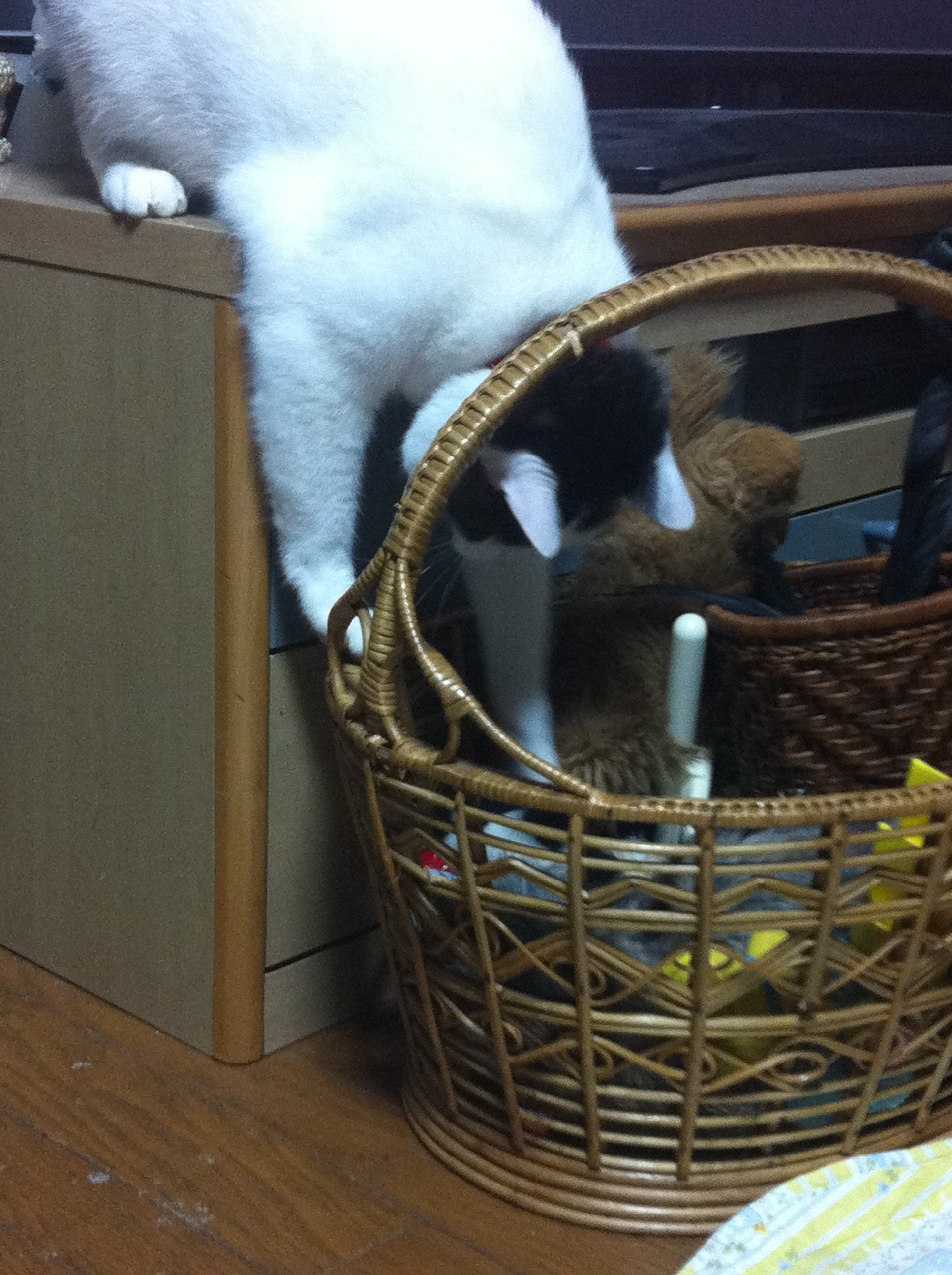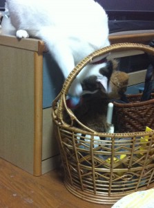 おもちゃ入れからおもちゃを出すネコ。。